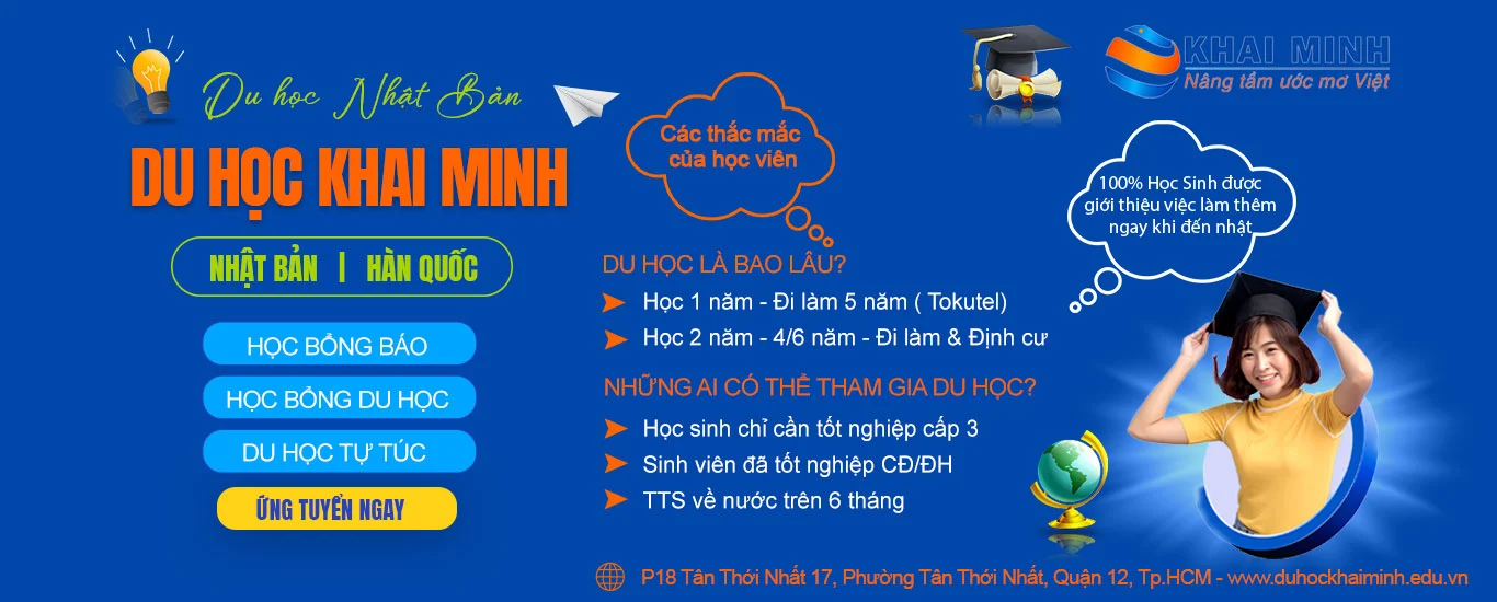 Công Ty TNHH Quốc Tế Khai Minh (Du học Khai Minh) là một trong những đơn vị tư vấn du học uy tín hàng đầu tại Việt Nam. Chuyên về lĩnh vực tư vấn du học Nhật Bản - Hàn Quốc.